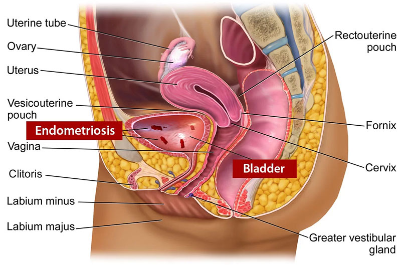 This condition typically causes cycle-related urinary discomfort, pelvic pain, or pressure. In deeper cases, the bladder wall may become thickened, leading to difficulty in fully emptying the bladder or increased frequency of urination. Early detection and specialised treatment can prevent progression and protect long-term bladder function.