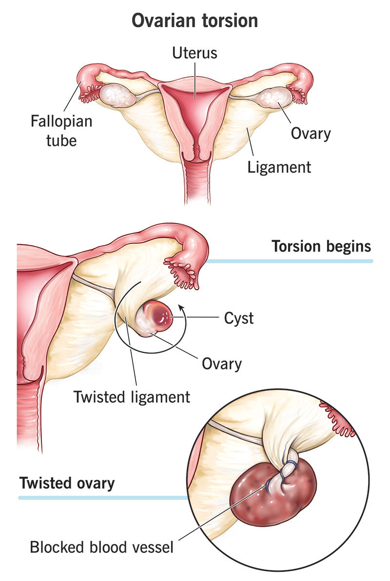 Ovarian torsion is a sudden, painful condition in which an ovary twists around the ligaments that support it. This twist disrupts blood flow to the ovary and fallopian tube, leading to severe pelvic pain and requiring immediate medical attention. It most often occurs when an ovary becomes enlarged due to a cyst, dermoid, or other growth. With prompt diagnosis and timely laparoscopic treatment, the ovary can often be saved and long-term complications can be prevented.